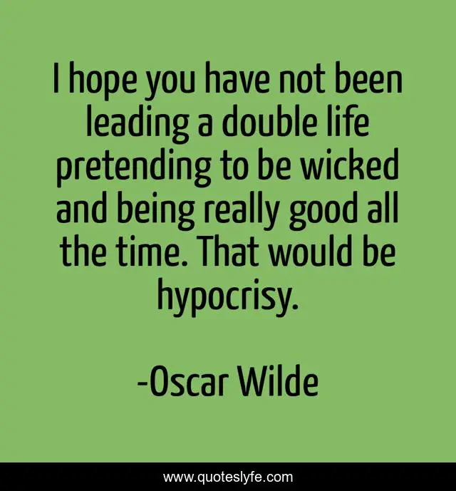This page presents the quote "I hope you have not been leading a double life pretending to be wicked and being really good all the time. That would be hypocrisy.". Author of this quote is Oscar Wilde. .