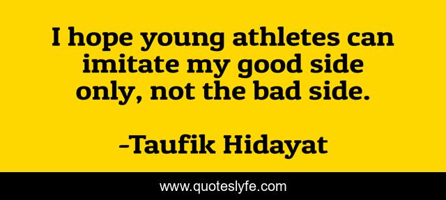 This page presents the quote "I hope young athletes can imitate my good side only, not the bad side.". Author of this quote is Taufik Hidayat. This quote is about bad, good, young,.