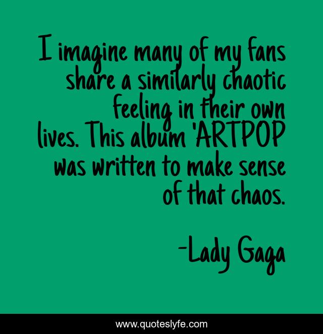 This page presents the quote "I imagine many of my fans share a similarly chaotic feeling in their own lives. This album 'ARTPOP was written to make sense of that chaos.". Author of this quote is Lady Gaga. This quote is about caring, inspiring, loving,.
