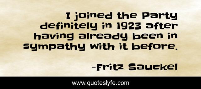 This page presents the quote "I joined the Party definitely in 1923 after having already been in sympathy with it before.". Author of this quote is Fritz Sauckel. This quote is about party, been, before,.