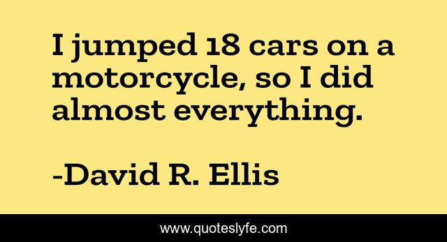 "David R. Ellis Quotes." Quoteslyfe.com, 2025. Tue. 09 Dec. 2025. <https://www.quoteslyfe.com/quote/I-jumped-18-cars-on-a-motorcycle-323306>.