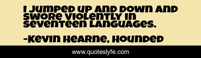 This page presents the quote "I jumped up and down and swore violently in seventeen languages.". Author of this quote is Kevin Hearne, Hounded. This quote is about humorous, iron-druid-chronicles, humor,.