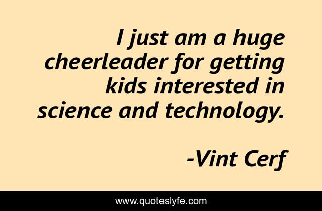 This page presents the quote "I just am a huge cheerleader for getting kids interested in science and technology.". Author of this quote is Vint Cerf. This quote is about kids, technology, just,.