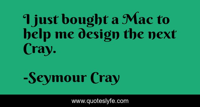 This page presents the quote "I just bought a Mac to help me design the next Cray.". Author of this quote is Seymour Cray. This quote is about me, design, help,.