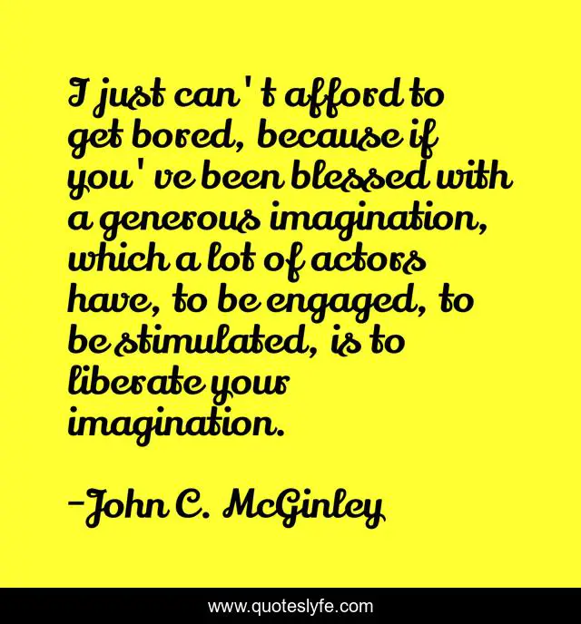 This page presents the quote "I just can't afford to get bored, because if you've been blessed with a generous imagination, which a lot of actors have, to be engaged, to be stimulated, is to liberate your imagination.". Author of this quote is John C. McGinley. This quote is about bored, blessed,.