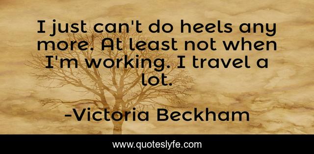 This page presents the quote "I just can't do heels any more. At least not when I'm working. I travel a lot.". Author of this quote is Victoria Beckham. This quote is about heels, working, just,.