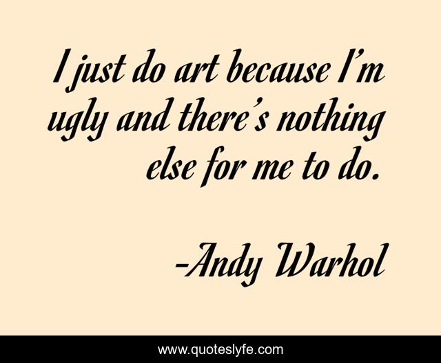 This page presents the quote "I just do art because I’m ugly and there’s nothing else for me to do.". Author of this quote is Andy Warhol. This quote is about ugly, art, andy-warhol, warhol,.