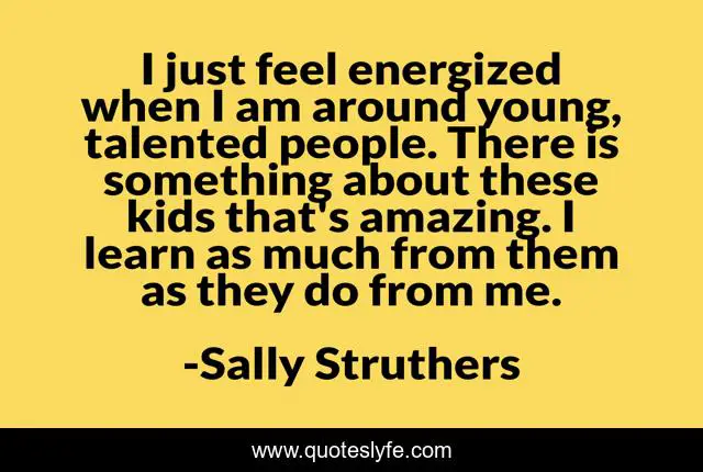 This page presents the quote "I just feel energized when I am around young, talented people. There is something about these kids that's amazing. I learn as much from them as they do from me.". Author of this quote is Sally Struthers. This quote is about me, people,.