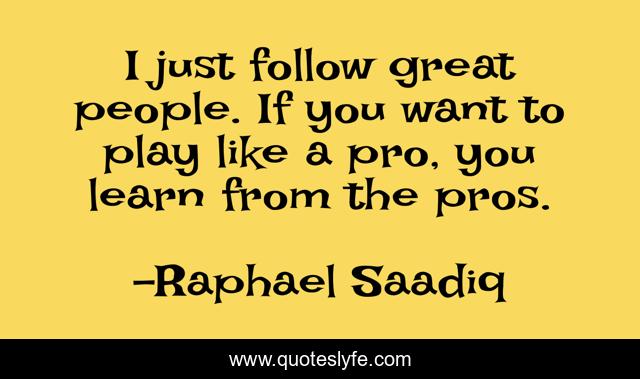 This page presents the quote "I just follow great people. If you want to play like a pro, you learn from the pros.". Author of this quote is Raphael Saadiq. This quote is about play, people,.