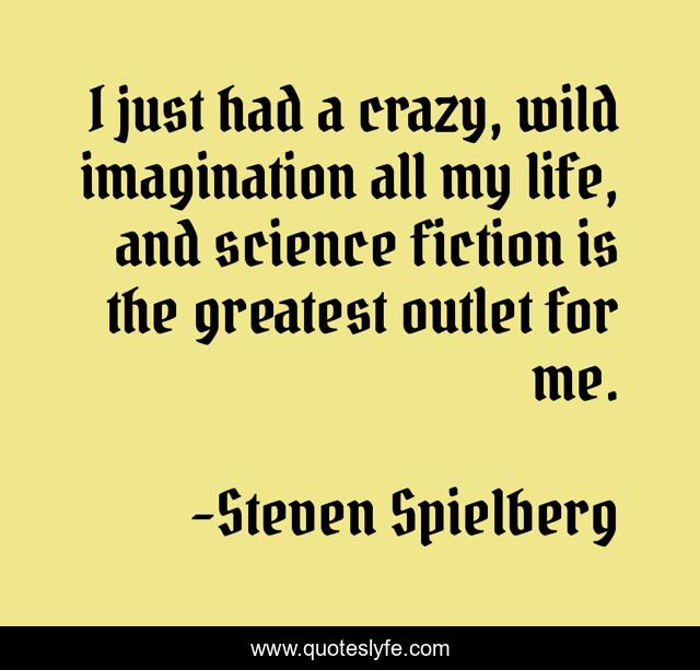 This page presents the quote "I just had a crazy, wild imagination all my life, and science fiction is the greatest outlet for me.". Author of this quote is Steven Spielberg. This quote is about imagination, life, crazy,.
