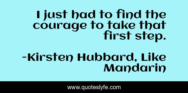 This page presents the quote "I just had to find the courage to take that first step.". Author of this quote is Kirsten Hubbard, Like Mandarin. This quote is about courage, bravery,.
