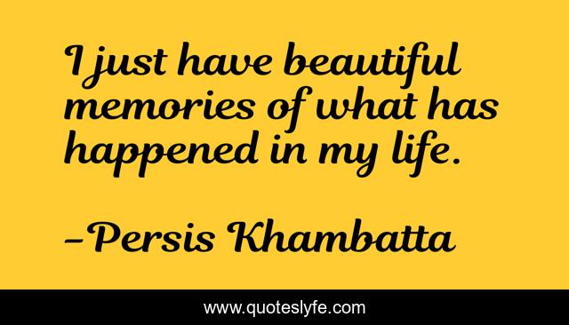 This page presents the quote "I just have beautiful memories of what has happened in my life.". Author of this quote is Persis Khambatta. This quote is about beautiful, memories, my life,.