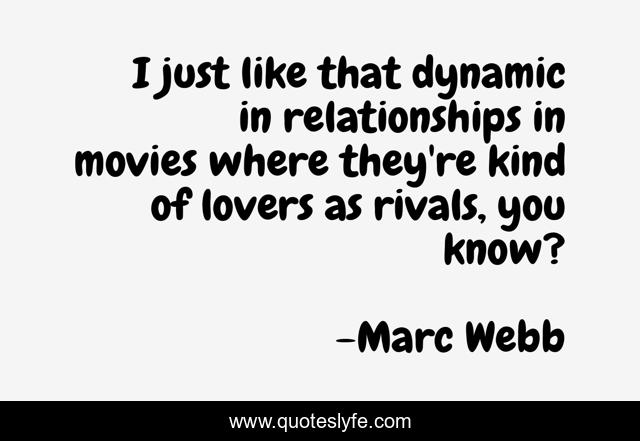 This page presents the quote "I just like that dynamic in relationships in movies where they're kind of lovers as rivals, you know?". Author of this quote is Marc Webb. .