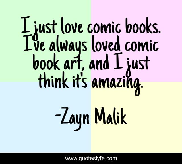 This page presents the quote "I just love comic books. I've always loved comic book art, and I just think it's amazing.". Author of this quote is Zayn Malik. This quote is about love, book, art, affection,.