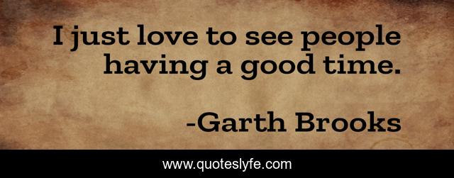 This page presents the quote "I just love to see people having a good time.". Author of this quote is Garth Brooks. This quote is about good, love, affection,.