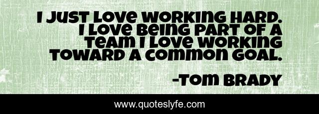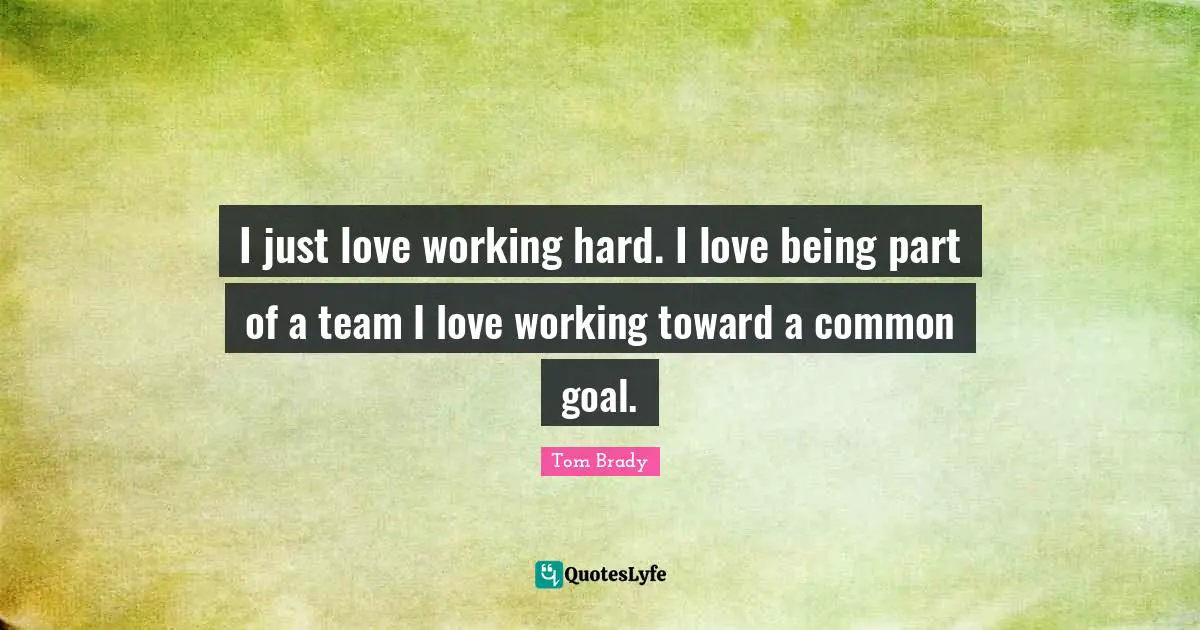 This page presents the quote "I just love working hard. I love being part of a team I love working toward a common goal.". Author of this quote is Tom Brady. This quote is about working hard, goal, team,.