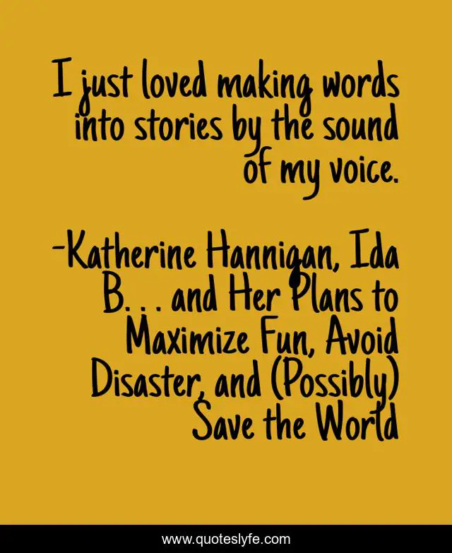 "Katherine Hannigan, Ida B. . . and Her Plans to Maximize Fun, Avoid Disaster, and (Possibly) Save the World Quotes." Quoteslyfe.com, 2025. Fri. 05 Dec. 2025. <https://www.quoteslyfe.com/quote/I-just-loved-making-words-into-stories-66611>.