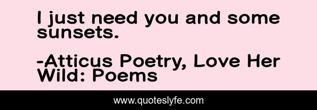 "Atticus Poetry, Love Her Wild: Poems Quotes." Quoteslyfe.com, 2025. Fri. 05 Dec. 2025. <https://www.quoteslyfe.com/quote/I-just-need-you-and-some-sunsets-22657>.