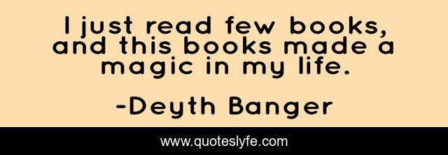 This page presents the quote "I just read few books, and this books made a magic in my life.". Author of this quote is Deyth Banger. This quote is about read, books, magic,.