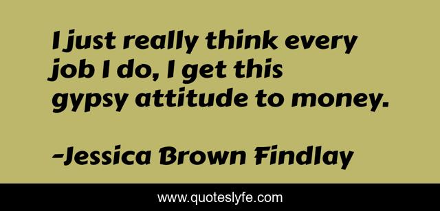 This page presents the quote "I just really think every job I do, I get this gypsy attitude to money.". Author of this quote is Jessica Brown Findlay. This quote is about money, job, think,.