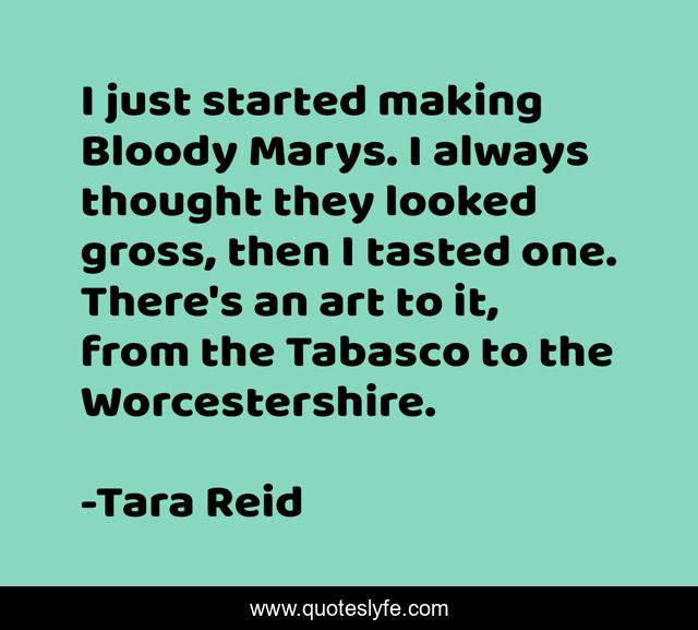 This page presents the quote "I just started making Bloody Marys. I always thought they looked gross, then I tasted one. There's an art to it, from the Tabasco to the Worcestershire.". Author of this quote is Tara Reid. This quote is about thought, always, started,.