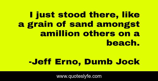 This page presents the quote "I just stood there, like a grain of sand amongst amillion others on a beach.". Author of this quote is Jeff Erno, Dumb Jock. This quote is about truths, unrequited-love,.