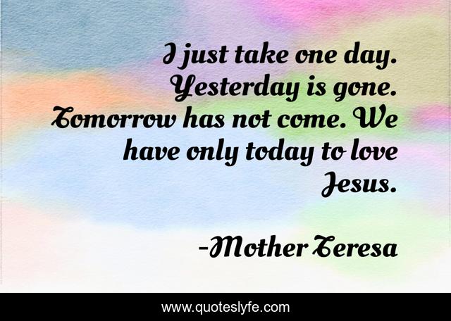 This page presents the quote "I just take one day. Yesterday is gone. Tomorrow has not come. We have only today to love Jesus.". Author of this quote is Mother Teresa. .