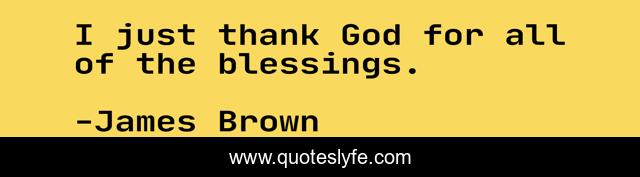 This page presents the quote "I just thank God for all of the blessings.". Author of this quote is James Brown. This quote is about thank god, just, blessings,.