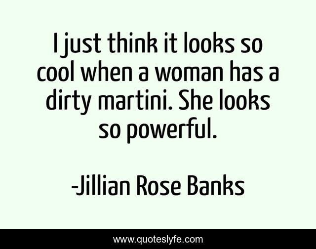 This page presents the quote "I just think it looks so cool when a woman has a dirty martini. She looks so powerful.". Author of this quote is Jillian Rose Banks. This quote is about woman, powerful, think,.
