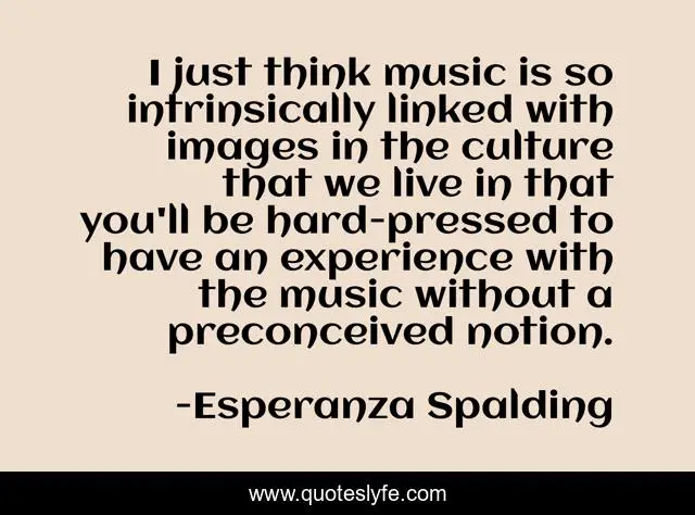 This page presents the quote "I just think music is so intrinsically linked with images in the culture that we live in that you'll be hard-pressed to have an experience with the music without a preconceived notion.". Author of this quote is Esperanza Spalding. This quote is about culture, live, music,.