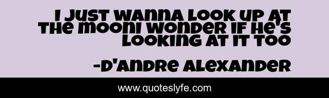 This page presents the quote "I just wanna look up at the moonI wonder if he's looking at it too". Author of this quote is D'Andre Alexander. This quote is about love, affection,.