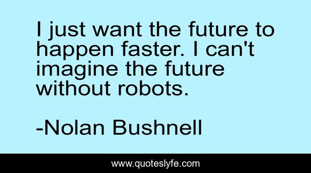 This page presents the quote "I just want the future to happen faster. I can't imagine the future without robots.". Author of this quote is Nolan Bushnell. This quote is about robots, faster,.