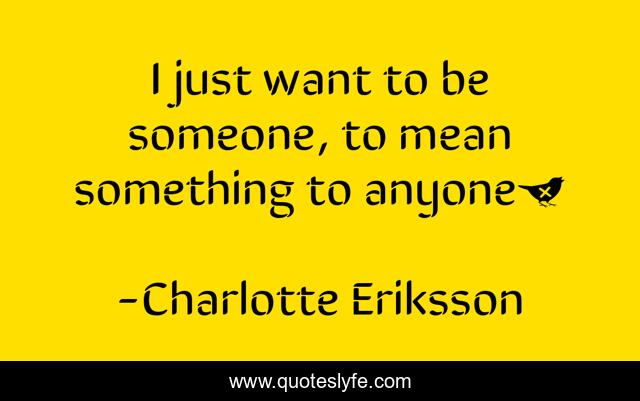 "Charlotte Eriksson Quotes." Quoteslyfe.com, 2025. Fri. 05 Dec. 2025. <https://www.quoteslyfe.com/quote/I-just-want-to-be-someone-to-47105>.