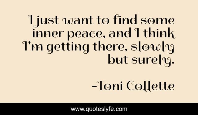 This page presents the quote "I just want to find some inner peace, and I think I'm getting there, slowly but surely.". Author of this quote is Toni Collette. This quote is about think, find,.