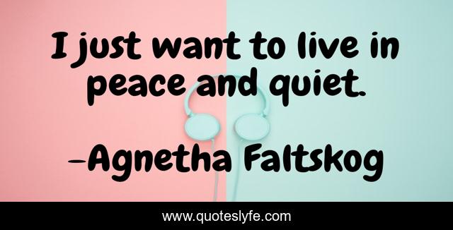 This page presents the quote "I just want to live in peace and quiet.". Author of this quote is Agnetha Faltskog. This quote is about live, quiet,.