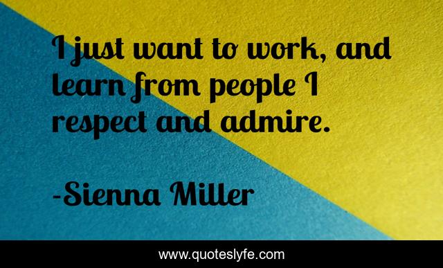 This page presents the quote "I just want to work, and learn from people I respect and admire.". Author of this quote is Sienna Miller. This quote is about work, people,.