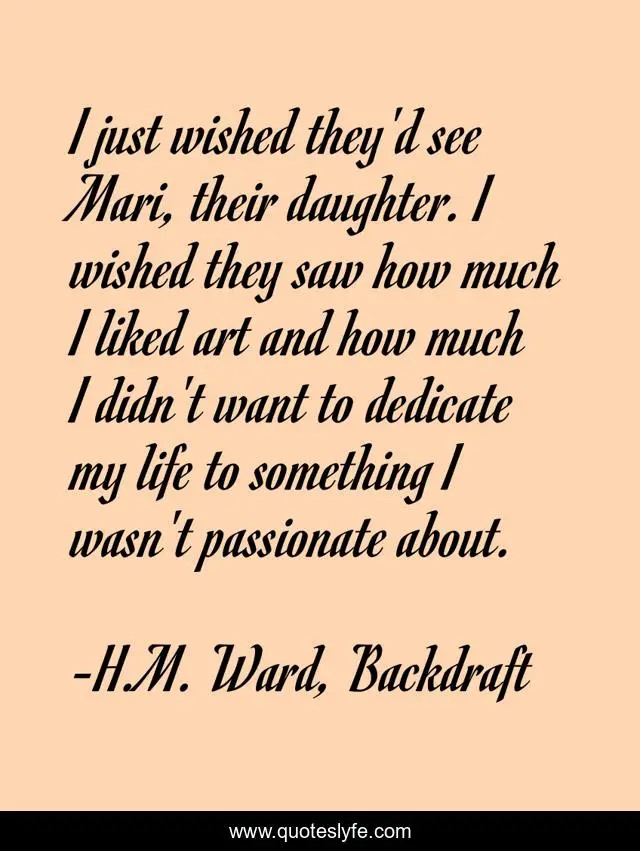 This page presents the quote "I just wished they'd see Mari, their daughter. I wished they saw how much I liked art and how much I didn't want to dedicate my life to something I wasn't passionate about.". Author of this quote is H.M. Ward, Backdraft. This quote is about life, pain, sorrow, family, sad,.