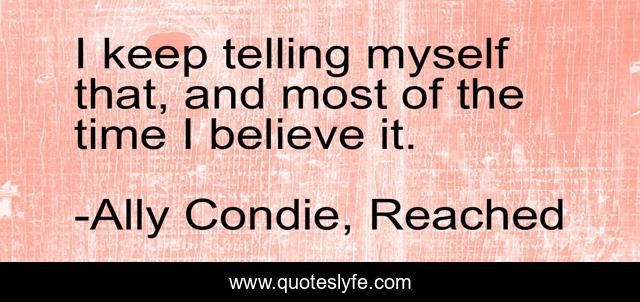 This page presents the quote "I keep telling myself that, and most of the time I believe it.". Author of this quote is Ally Condie, Reached. .