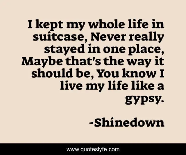 This page presents the quote "I kept my whole life in suitcase, Never really stayed in one place, Maybe that's the way it should be, You know I live my life like a gypsy.". Author of this quote is Shinedown. This quote is about life-style, life, loneliness,.