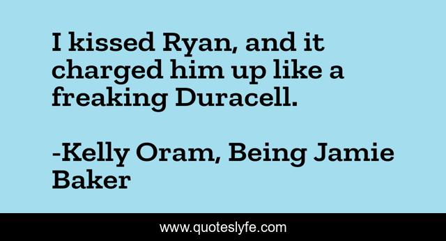 This page presents the quote "I kissed Ryan, and it charged him up like a freaking Duracell.". Author of this quote is Kelly Oram, Being Jamie Baker. This quote is about supernatural, young-adult, favorites,.