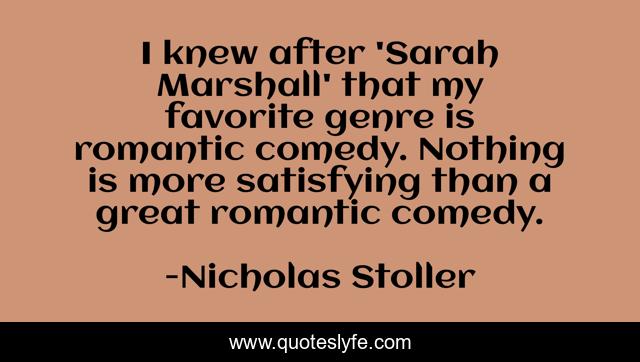 This page presents the quote "I knew after 'Sarah Marshall' that my favorite genre is romantic comedy. Nothing is more satisfying than a great romantic comedy.". Author of this quote is Nicholas Stoller. This quote is about great, comedy, favorite,.