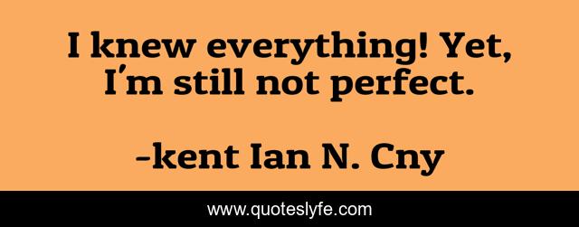 This page presents the quote "I knew everything! Yet, I'm still not perfect.". Author of this quote is kent Ian N. Cny. This quote is about insight, insightful,.