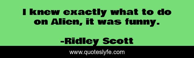 This page presents the quote "I knew exactly what to do on Alien, it was funny.". Author of this quote is Ridley Scott. This quote is about alien, exactly, knew,.