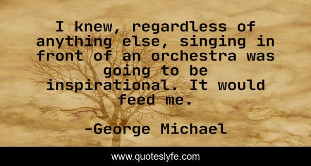 This page presents the quote "I knew, regardless of anything else, singing in front of an orchestra was going to be inspirational. It would feed me.". Author of this quote is George Michael. This quote is about me, singing, orchestra,.