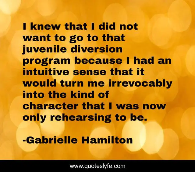 This page presents the quote "I knew that I did not want to go to that juvenile diversion program because I had an intuitive sense that it would turn me irrevocably into the kind of character that I was now only rehearsing to be.". Author of this quote is Gabrielle Hamilton. This quote is about growing-up, teenage-years,.