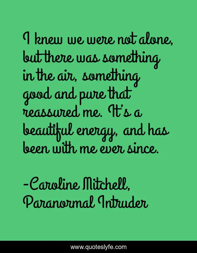 This page presents the quote "I knew we were not alone, but there was something in the air, something good and pure that reassured me. It’s a beautiful energy, and has been with me ever since.". Author of this quote is Caroline Mitchell, Paranormal Intruder. This quote is about energy, life-after-death, true-ghost-story,.