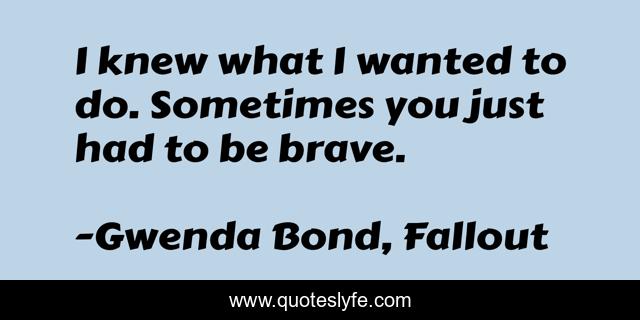 This page presents the quote "I knew what I wanted to do. Sometimes you just had to be brave.". Author of this quote is Gwenda Bond, Fallout. .