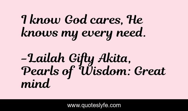 "Lailah Gifty Akita, Pearls of Wisdom: Great mind Quotes." Quoteslyfe.com, 2025. Mon. 08 Dec. 2025. <https://www.quoteslyfe.com/quote/I-know-God-cares-He-knows-my-169187>.