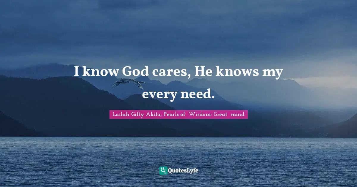 "Lailah Gifty Akita, Pearls of Wisdom: Great mind Quotes." Quoteslyfe.com, 2025. Tue. 23 Dec. 2025. <https://www.quoteslyfe.com/quote/I-know-God-cares-He-knows-my-169187>.