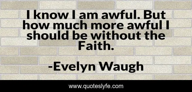 This page presents the quote "I know I am awful. But how much more awful I should be without the Faith.". Author of this quote is Evelyn Waugh. This quote is about catholic, christian-life, christian, christian-living,.